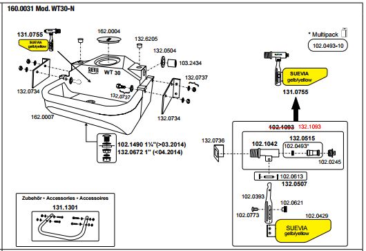 Doorvoerbuis inox (art-.nr. 131.1302), voor aansluiting op de ringleiding. Hierdoor is de WT30 in combinatie met een warmwatercirculatieunit Model 300/303, Model 311 of Model 312 vorstvrij te houden (warmwatercirculatieunits).